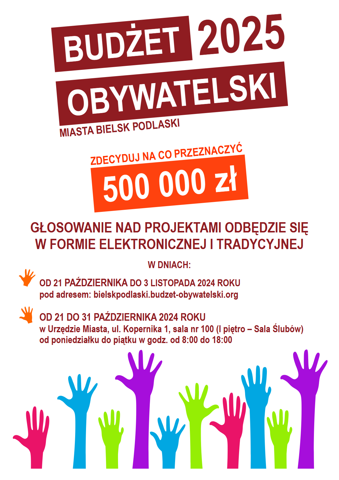 Więcej informacji o Budżecie Obywatelskim Miasta Bielsk Podlaski można znaleźć w zakładce „Budżet Obywatelski”.