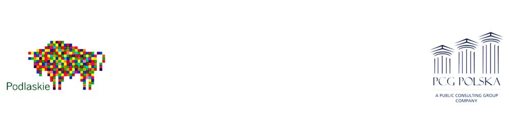 Poziony baner z dwoma logotypami: Województwa Podlaskiego i firmy PCG PolskaInformacje o strategii: