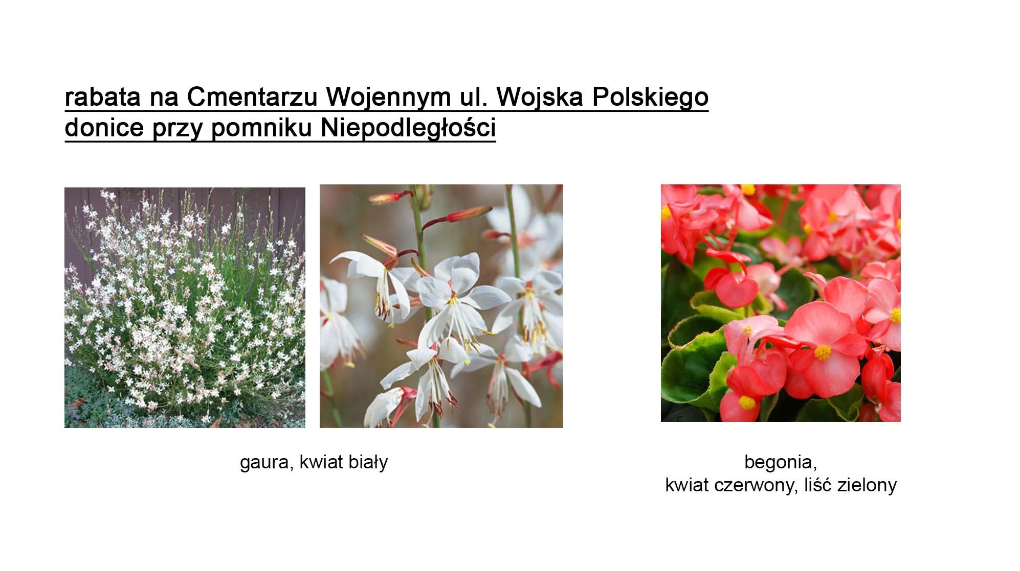 - na rabatach: przy ul. Kazimierzowskiej i na cmentarzu wojennym przy ul. Wojska Polskiego,