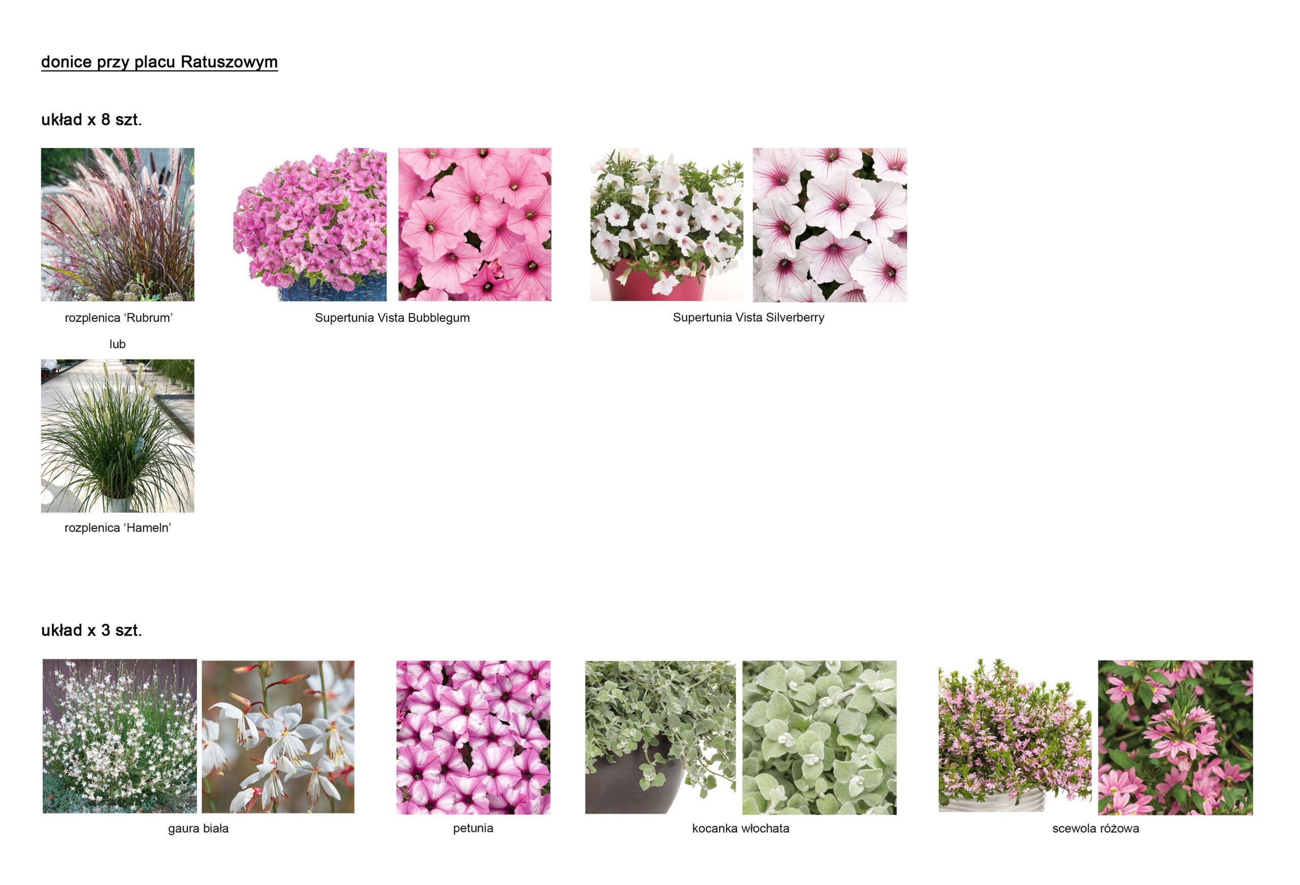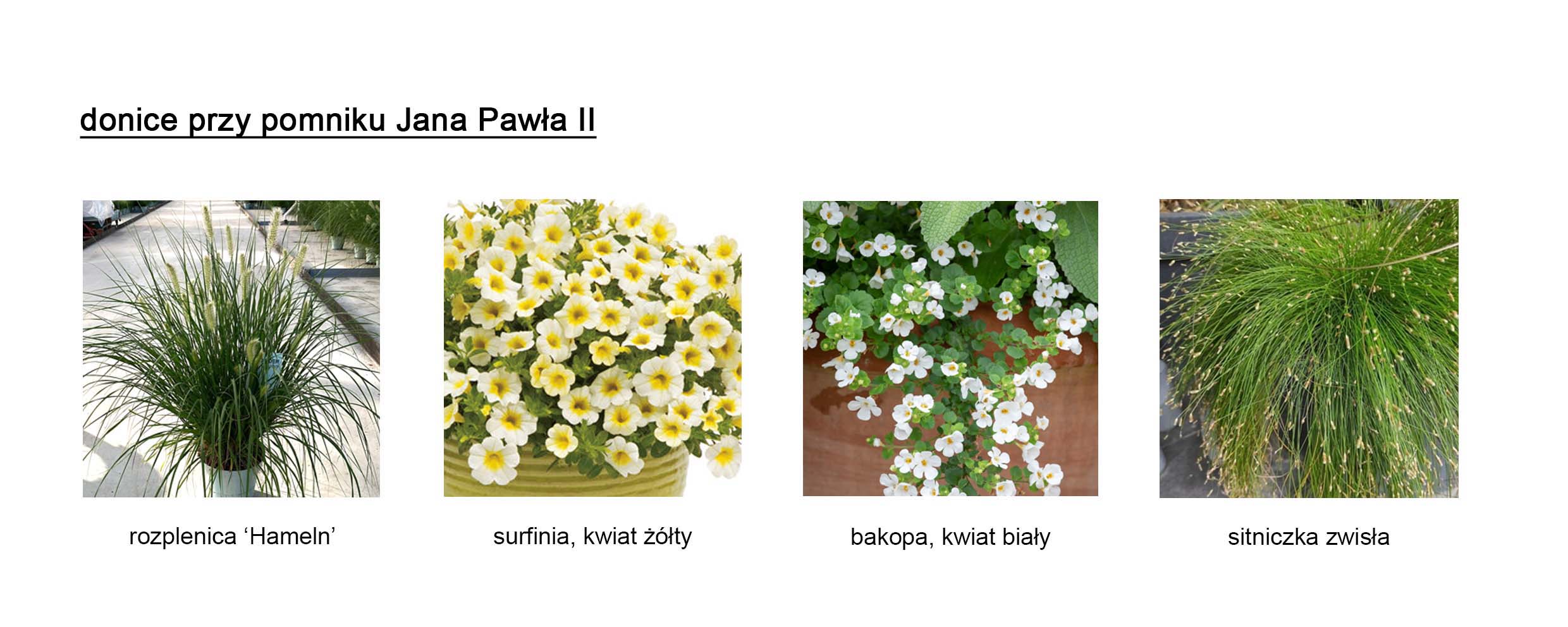 - w donicach: przy ul. Studziwodzkiej, przy pomniku Niepodległości Polski, przy pomniku św. Jana Pawła II, na Placu Jana Pawła II (przed ratuszem), w Parku Królowej Heleny,