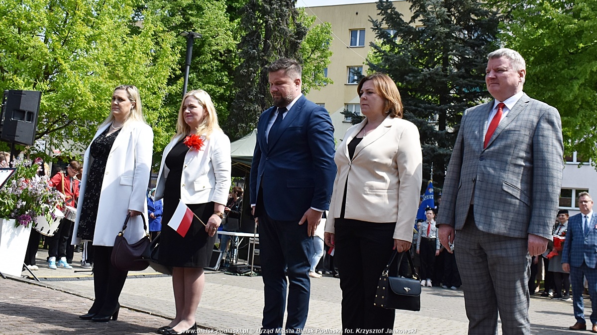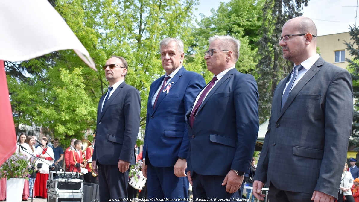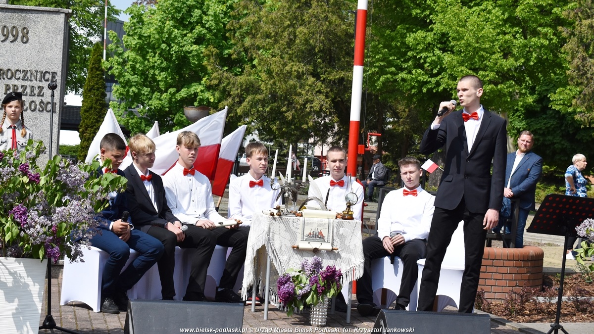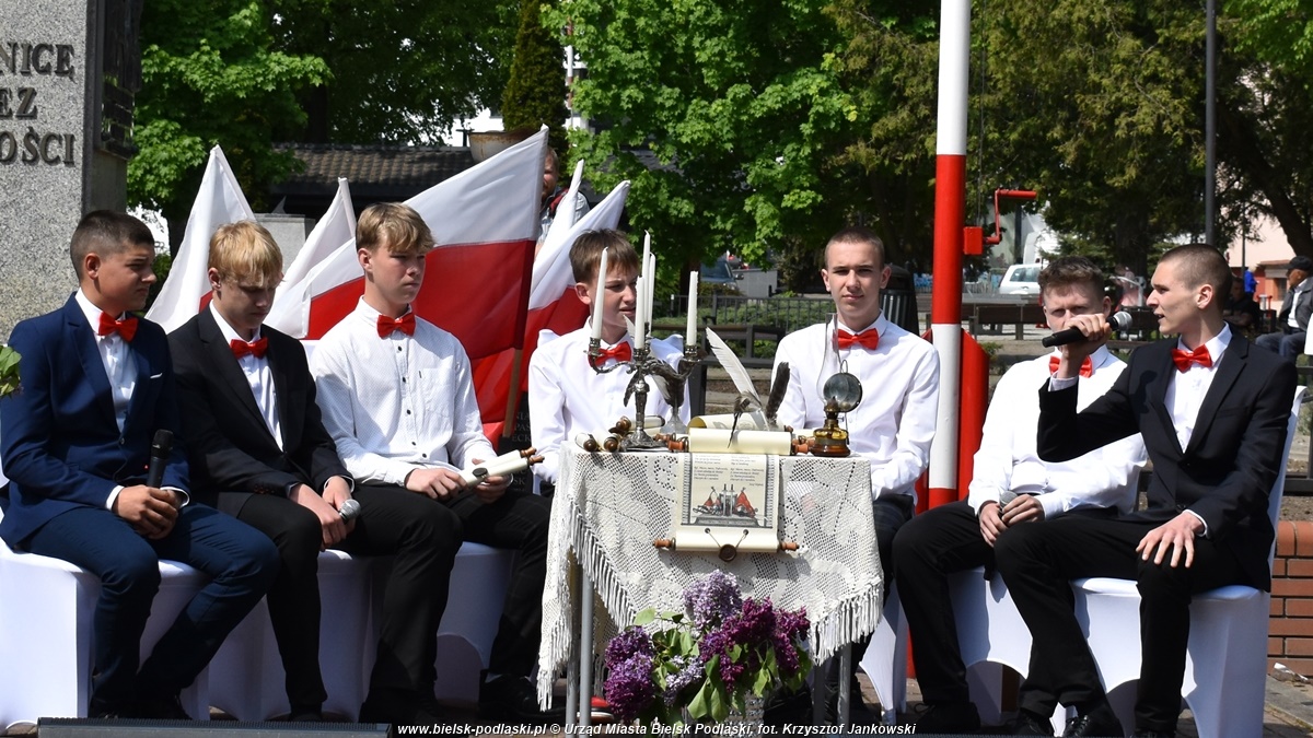 Po odegraniu hymnu państwowego, wystąpił organizator uroczystości – Starosta Bielski Sławomir Jerzy Snarski. Efektownym punktem obchodów był montaż słowno-muzyczny w wykonaniu uczniów Zespołu Szkół nr 1 im. Marszałka Józefa Piłsudskiego w Bielsku Podlaskim. Młodzi artyści w wyjątkowy sposób oddali hołd twórcom Konstytucji 3 Maja oraz wszystkim, którzy przyczynili się do odzyskania niepodległości przez Polskę.