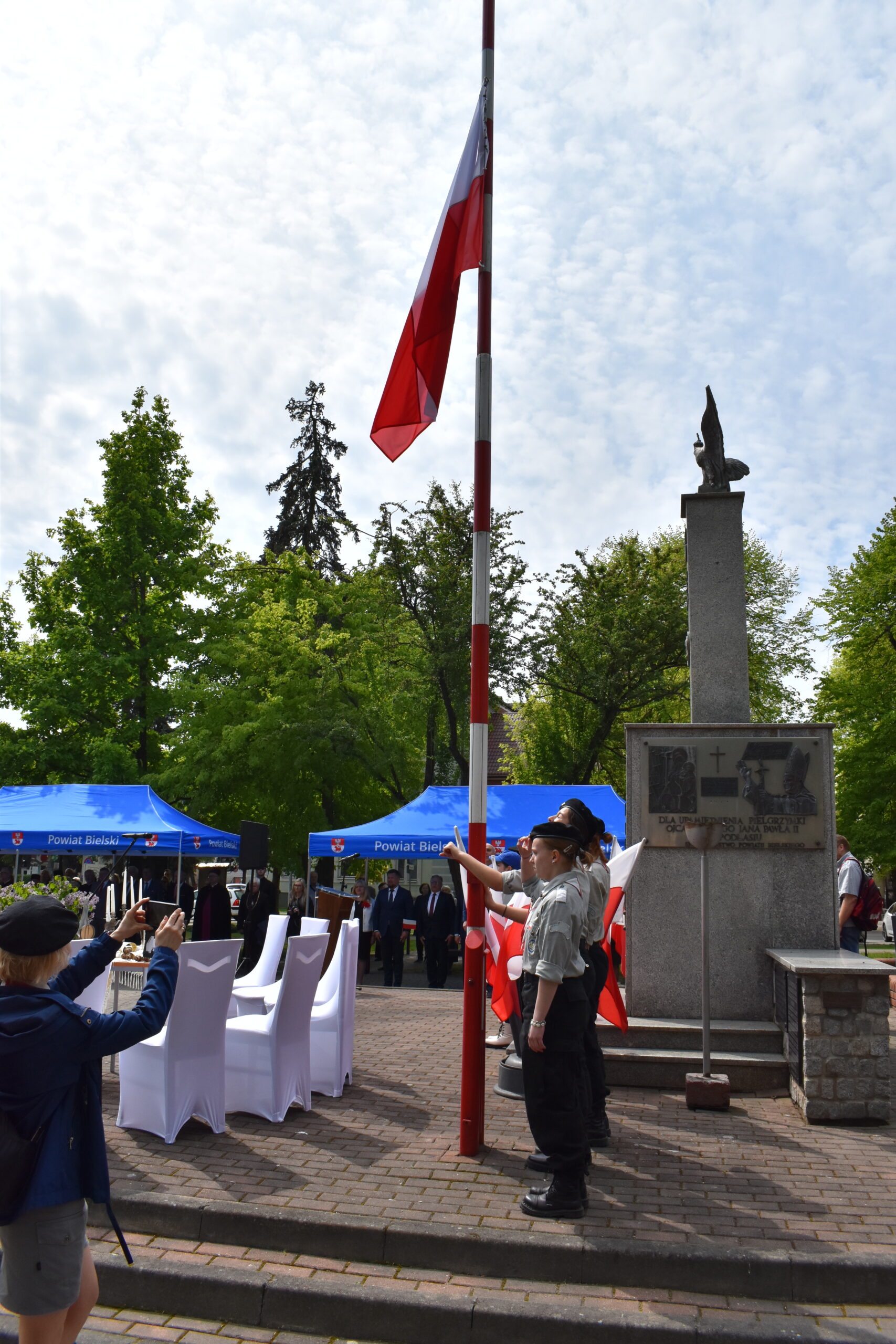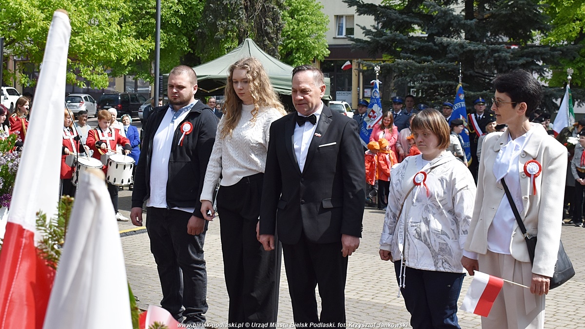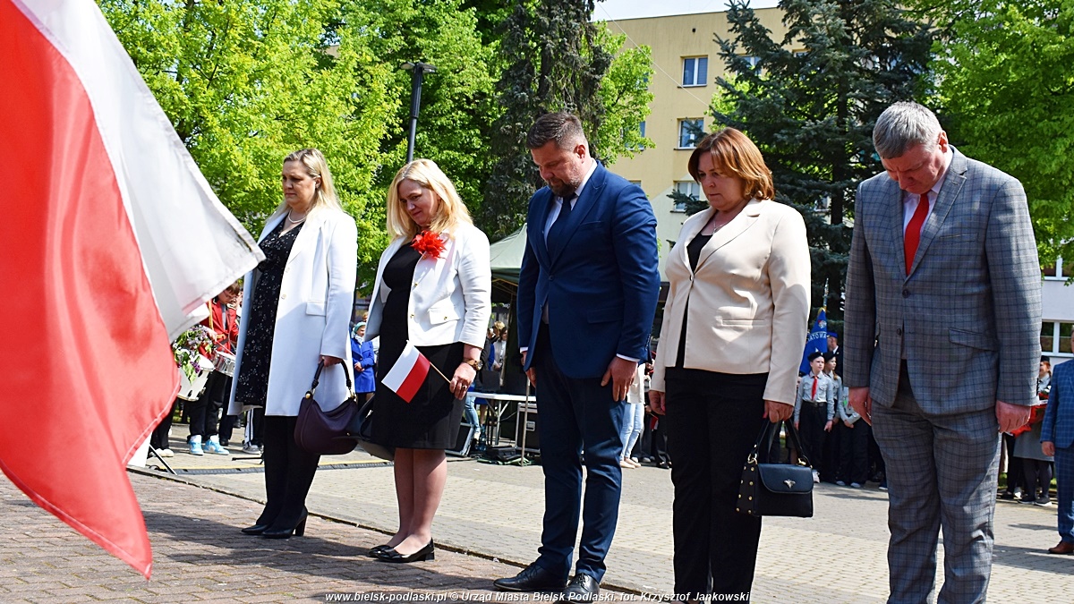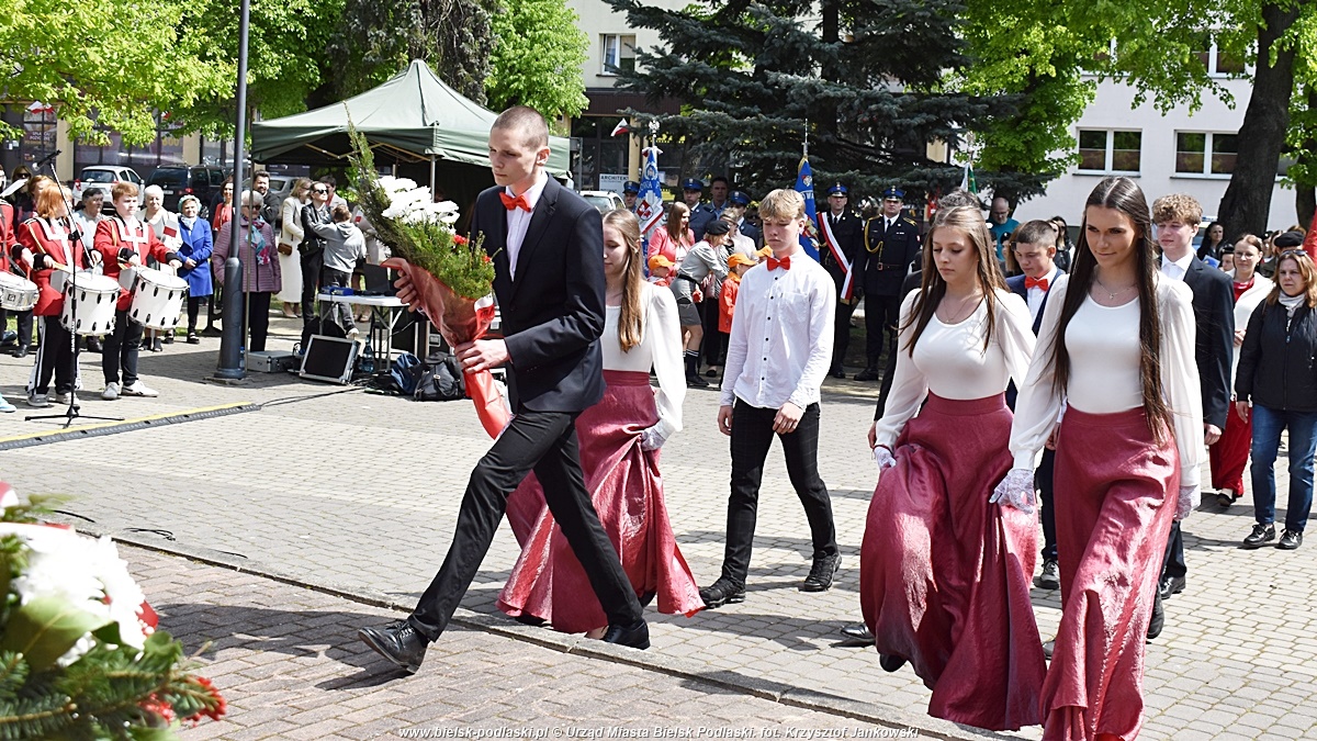 Po odegraniu hymnu państwowego, wystąpił organizator uroczystości – Starosta Bielski Sławomir Jerzy Snarski. Efektownym punktem obchodów był montaż słowno-muzyczny w wykonaniu uczniów Zespołu Szkół nr 1 im. Marszałka Józefa Piłsudskiego w Bielsku Podlaskim. Młodzi artyści w wyjątkowy sposób oddali hołd twórcom Konstytucji 3 Maja oraz wszystkim, którzy przyczynili się do odzyskania niepodległości przez Polskę.
