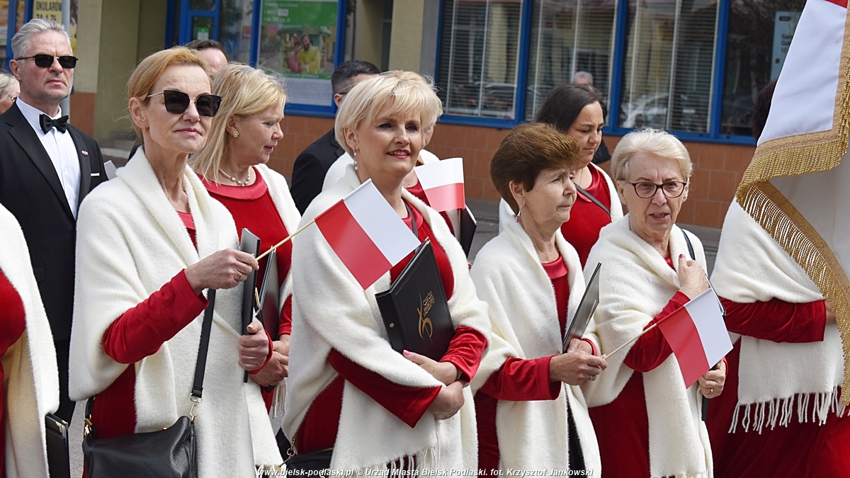 Po mszy uczestnicy zgromadzili się na placu przed pomnikiem św. Jana Pawła II, gdzie złożono wiązanki kwiatów. Później, w asyście Młodzieżowej Orkiestry Dętej i pocztów sztandarowych, przemaszerowano ulicami miasta na skwer im. Izabeli Branickiej, przed pomnik Niepodległości Polski.