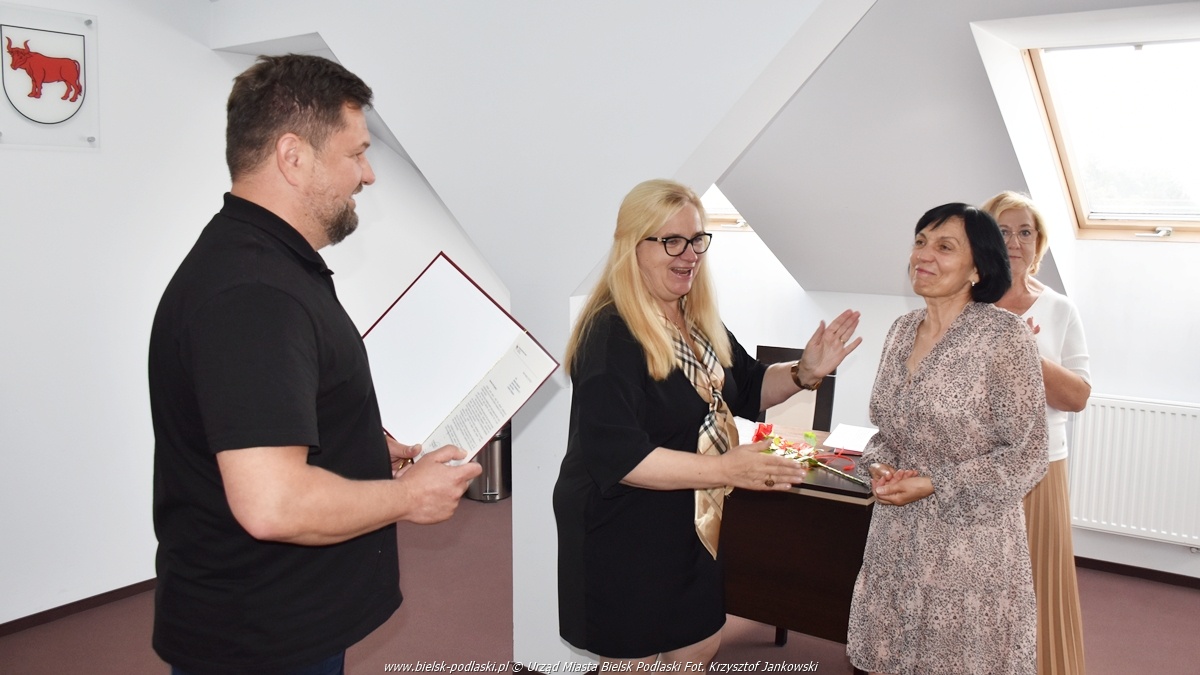 W sali konferencyjnej Urzędu Miasta Bielsk Podlaski odbyło się spotkanie dyrektorów miejskich placówek edukacyjnych, podczas którego Burmistrz Miasta Bielsk Podlaski Piotr Wawulski oraz Zastępca Burmistrza Iwona Kołos podziękowali pani Elżbiecie Nielipińskiej za wieloletnią i pełną zaangażowania pracę na rzecz najmłodszych mieszkańców naszego miasta.